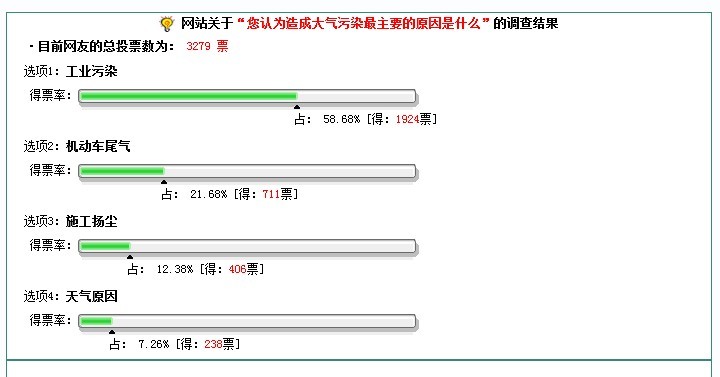 在這上個選項中,我公司本著想要看到真實、公正的調(diào)查結(jié)果,在進行投票(工業(yè)污染)后才進行結(jié)果查看,結(jié)果如圖: